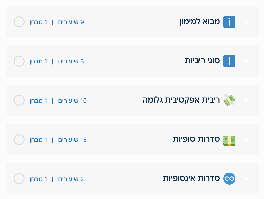 לאחר מכן נלמד על סדרות – סופיות ואינסופיות, קבועות וצומחות.