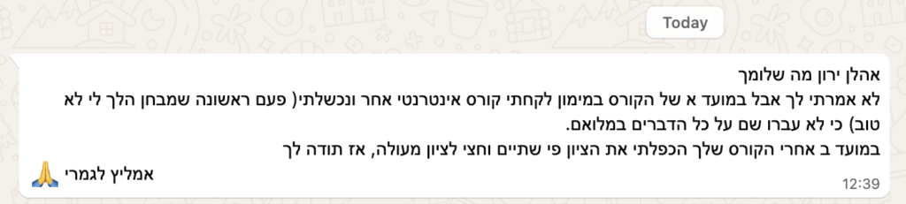 טעימה קצרה של חוות דעת והמלצות על הקורס.