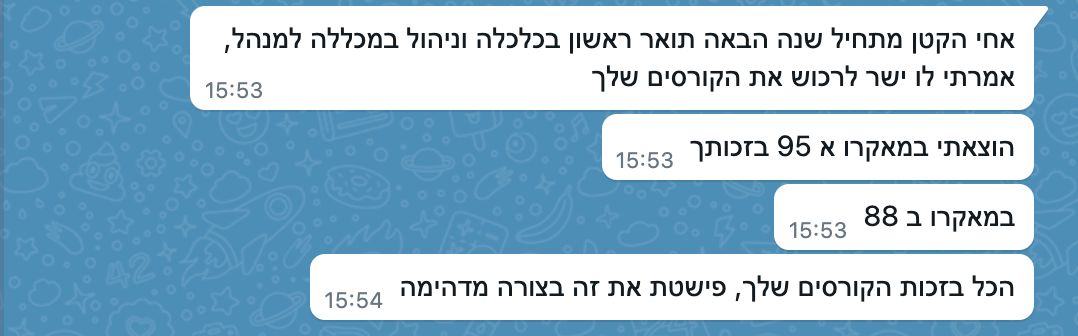 הטבה גדולה יותר למי שבונה לעצמו חבילת קורסים לסמסטר.