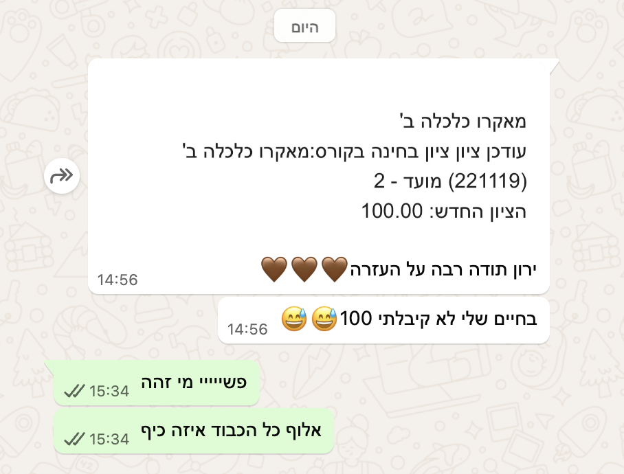 תרגול ממוקד על מבחנים של המוסד עצמו, כדי להתאמן על חומר רלוונטי באמת.