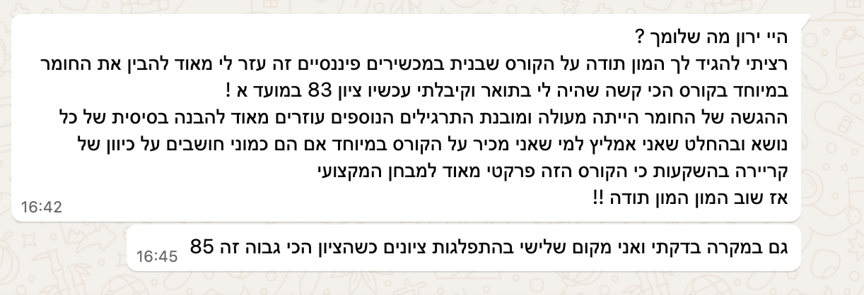 טעימה קצרה של חוות דעת והמלצות על הקורס.