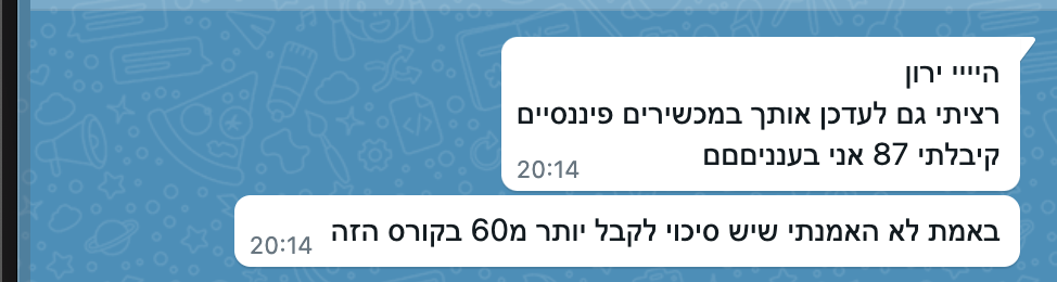 קוד קופון קבוע להזמנה גדולה יותר, למי שלוקח יותר מקורס אחד.