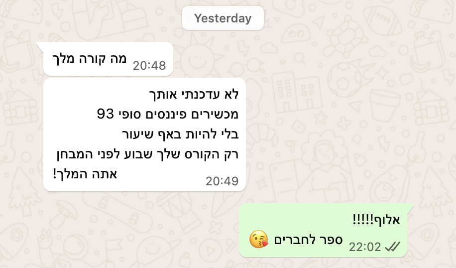 שיעורים ברורים ומדויקים, בלי מריחות ובלי לבזבז זמן על מה שלא באמת חשוב.