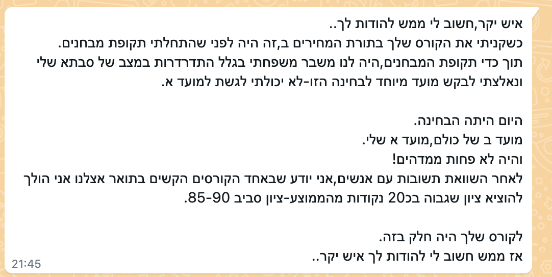 טעימה קצרה של חוות דעת והמלצות על הקורס.