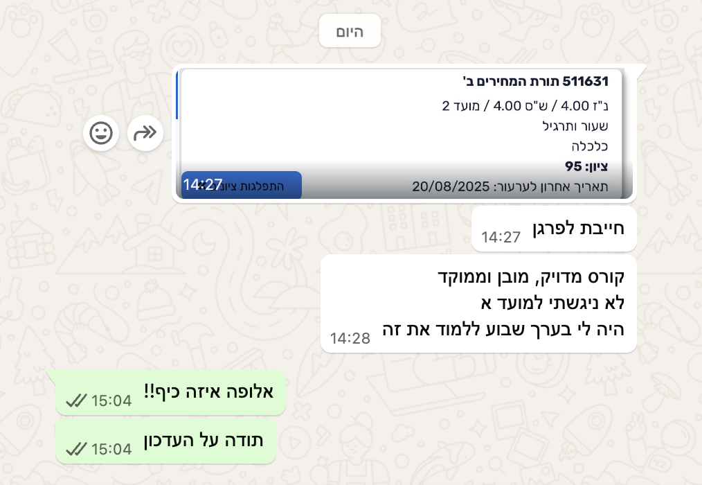 המלצות של סטודנטים
