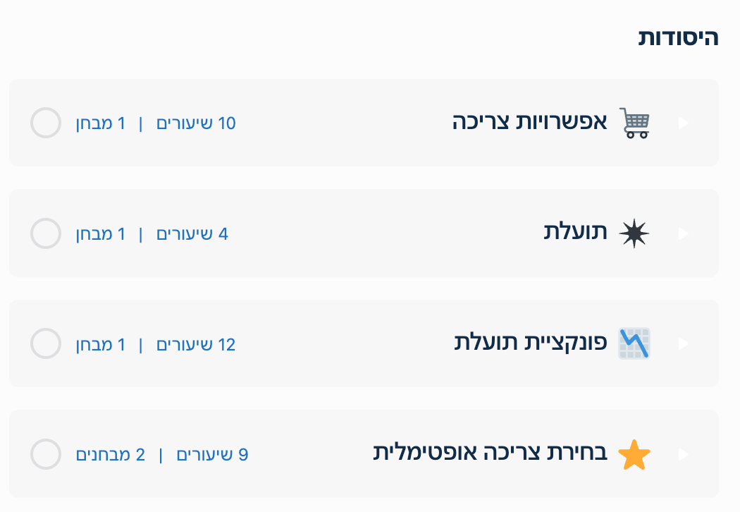 הקורס מלא בסרטוני לימוד ותרגול שמכסים את החומר בצורה הטובה ביותר