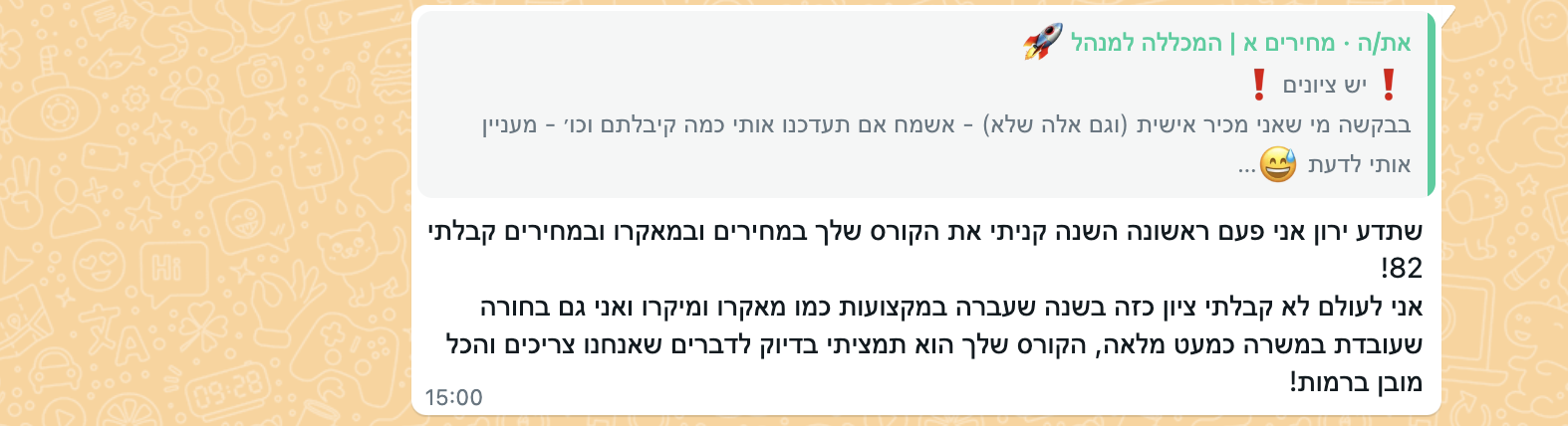 טעימה קצרה של חוות דעת והמלצות על הקורס.