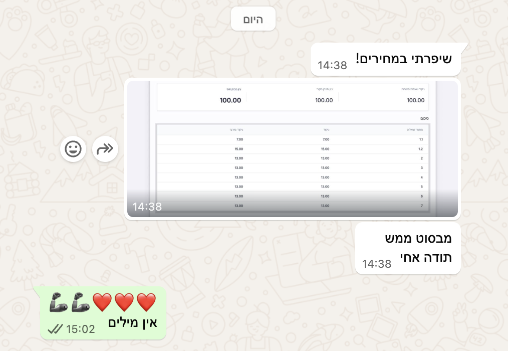 15% הנחה ברכישה של יותר מ־500 ש״ח